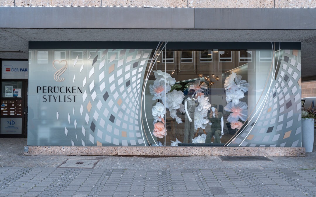 Eleganter Sichtschutz für GlasflächenWerbeschilder