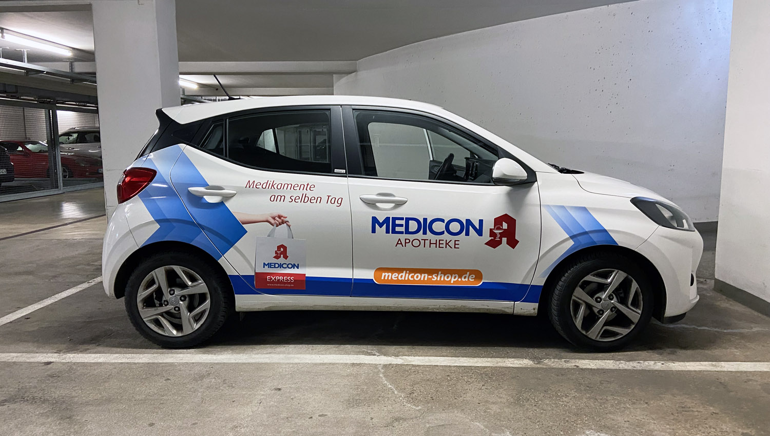 Fahrzeug- und Schaufensterbeschriftung für Medicon Apotheken
