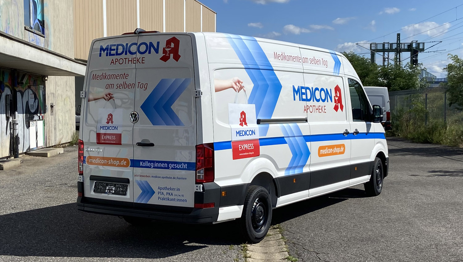 Als erfahrene Werbetechniker in Nürnberg gestaltet PROSTYLE-DESIGN die Fahrzeug- und Schaufensterbeschriftung für die Medicon Apotheken. Wir setzen auf individuelle Designs, hochwertige Materialien und präzise Umsetzung. So schaffen wir ein einheitliches und professionelles Erscheinungsbild, das die Markenidentität stärkt und Aufmerksamkeit bei Kunden erzeugt – mobil und direkt am Standort.